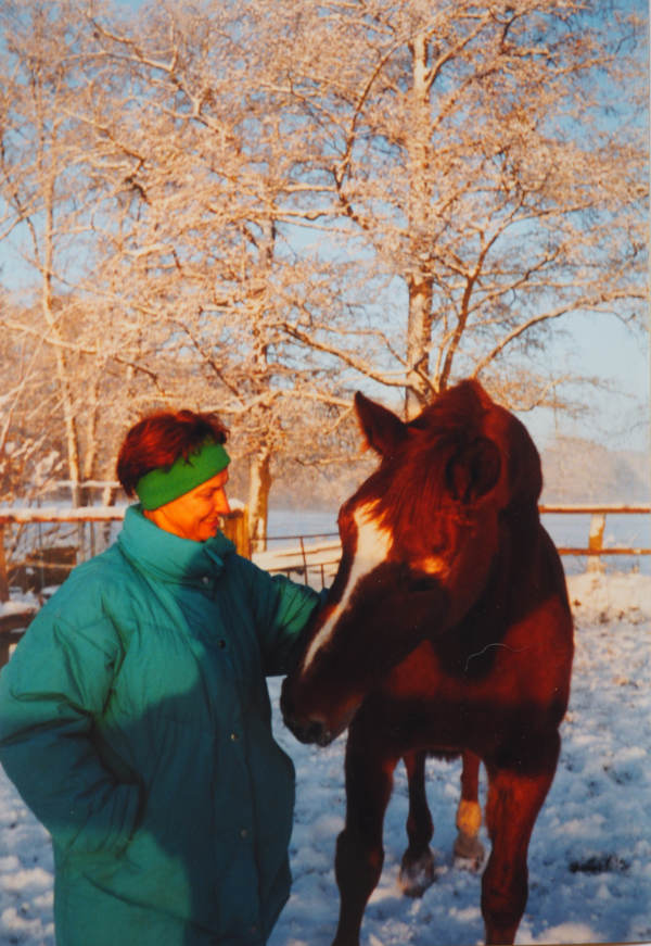 Nach der Schule ging es dann erstmal zurück ins Ruhrgebiet, wo ich ursprünglich herkomme. Hier hatte ich während meines Studiums der Sozialpädagogik in Dortmund eine Reitbeteiligung an einem rumänischen Vollblut. Bis dann im Januar 1999 River in mein Leben getrabt kam und gesagt hat: „Hallo, ich bin`s. Dein Pferd.“ Da dies ganz unzweifelhaft feststand, war es auch zweitrangig, dass ich zu diesem Zeitpunkt noch gar nicht darüber nachgedacht hatte, mir ein eigenes Pferd anzuschaffen, geschweige denn das Geld dafür vorhanden war. Dass sich dieser Zustand schnell änderte, verdanke ich meiner Tante Sabine und meinen Großeltern. Es sollte noch viele Jahre später ein Running Gag sein, dass Opas dritte Zähne nun auf vier Beinen herumlaufen. Für diese war das Geld nämlich ursprünglich vorgesehen gewesen.
